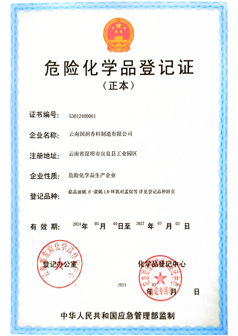 危险化学品登记证